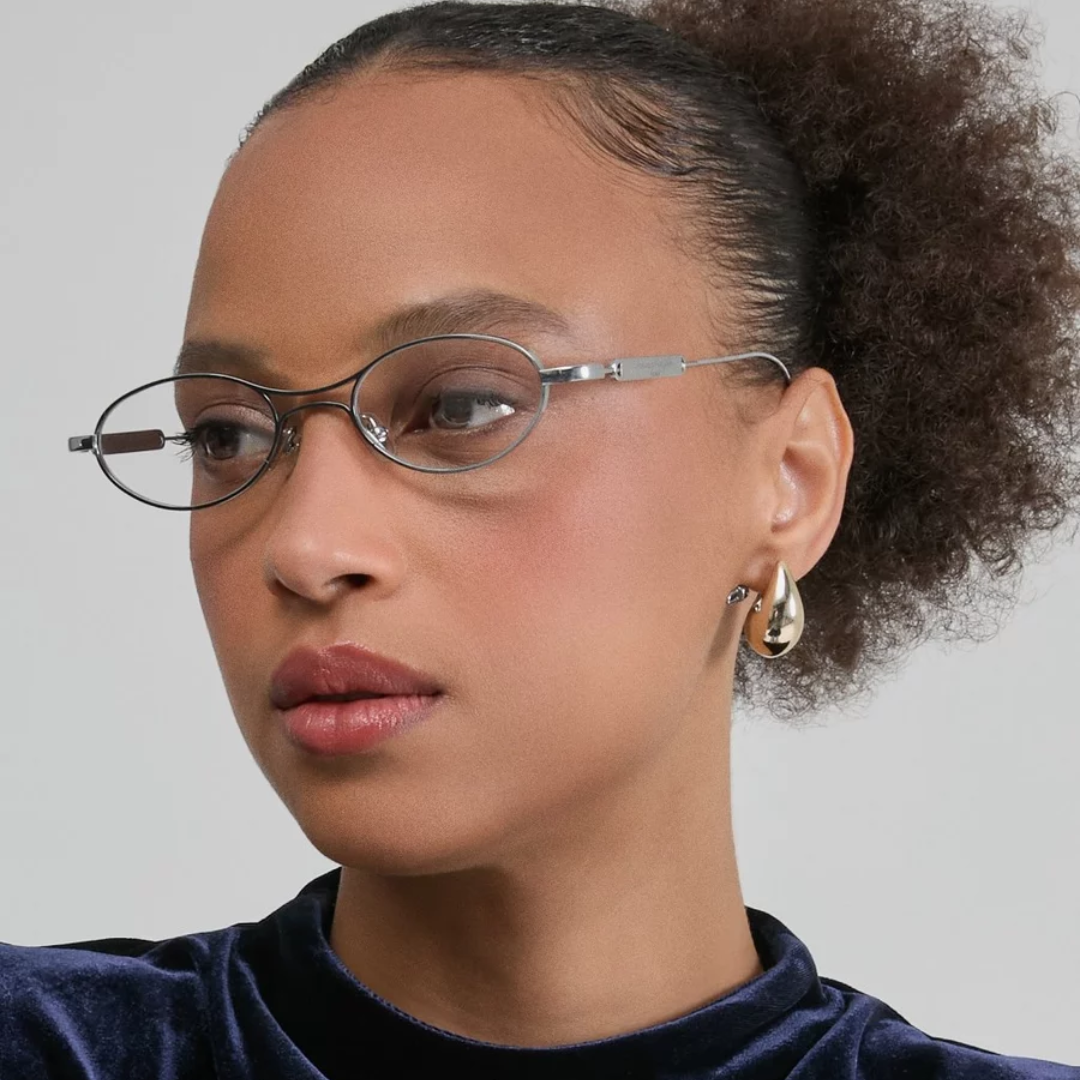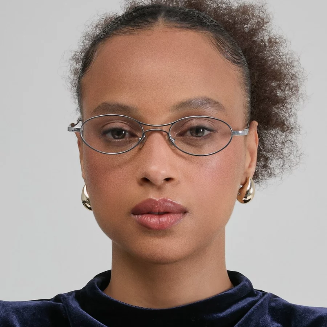O formato redondo suaviza o olhar e combina com rostos de diferentes formatos, enquanto o metal prateado adiciona brilho discreto e moderno. Uma armação unissex que eleva qualquer produção, do clássico ao Y2K.